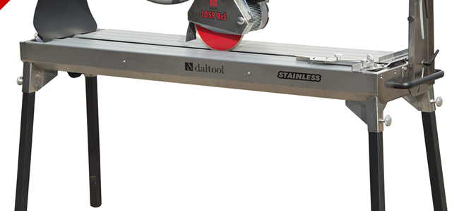 The DalTool 1059BrS Tile Saw is designed to deliver Fast and Chip Free Cutting on Ceramic, Porcelain, Marble and Granite Tile up to 59". The DalTool 1059BrS is equipped with a Powerful 2HP Direct Drive Motor and Plunge Cutting Capability to cut even the Hardest Tile. The 1059Brs has an integrated Miter Cutting Capability. Unlike Table Saws, the Bridge Style Design of the machine prevents cutting debris from ending up in the Precision Guide-Ways. This allows for Continuous Smooth Cutting Movements and Accurate Cuts.